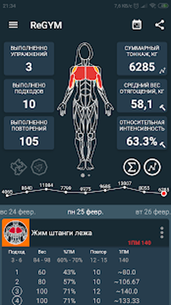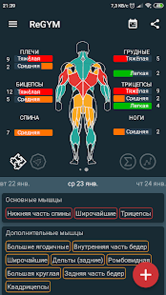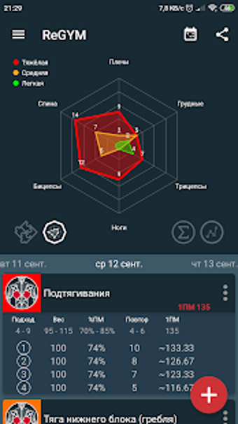 Приложение предоставляет вам информацию о восстановлении мышц, которая всегда поможет вам понять состояние вашего организма в любой день. ReGYM разработан для всех, от новичков до опытных спортсменов в таких видах спорта, как фитнес, бодибилдинг или пауэрлифтинг. Оно помогает достичь стабильного прогресса в тренировках без риска перетренировки и позволяет контролировать интенсивность нагрузок, планировать и использовать собственные тренировочные программы для увеличения силы или мышечной массы, сжигания жира или повышения выносливости.
